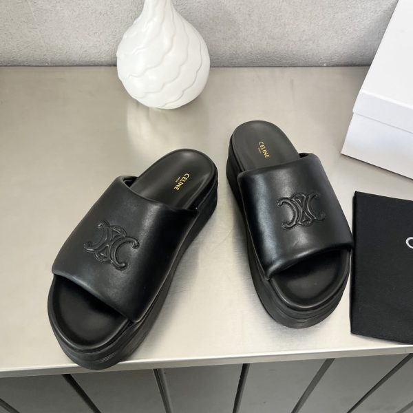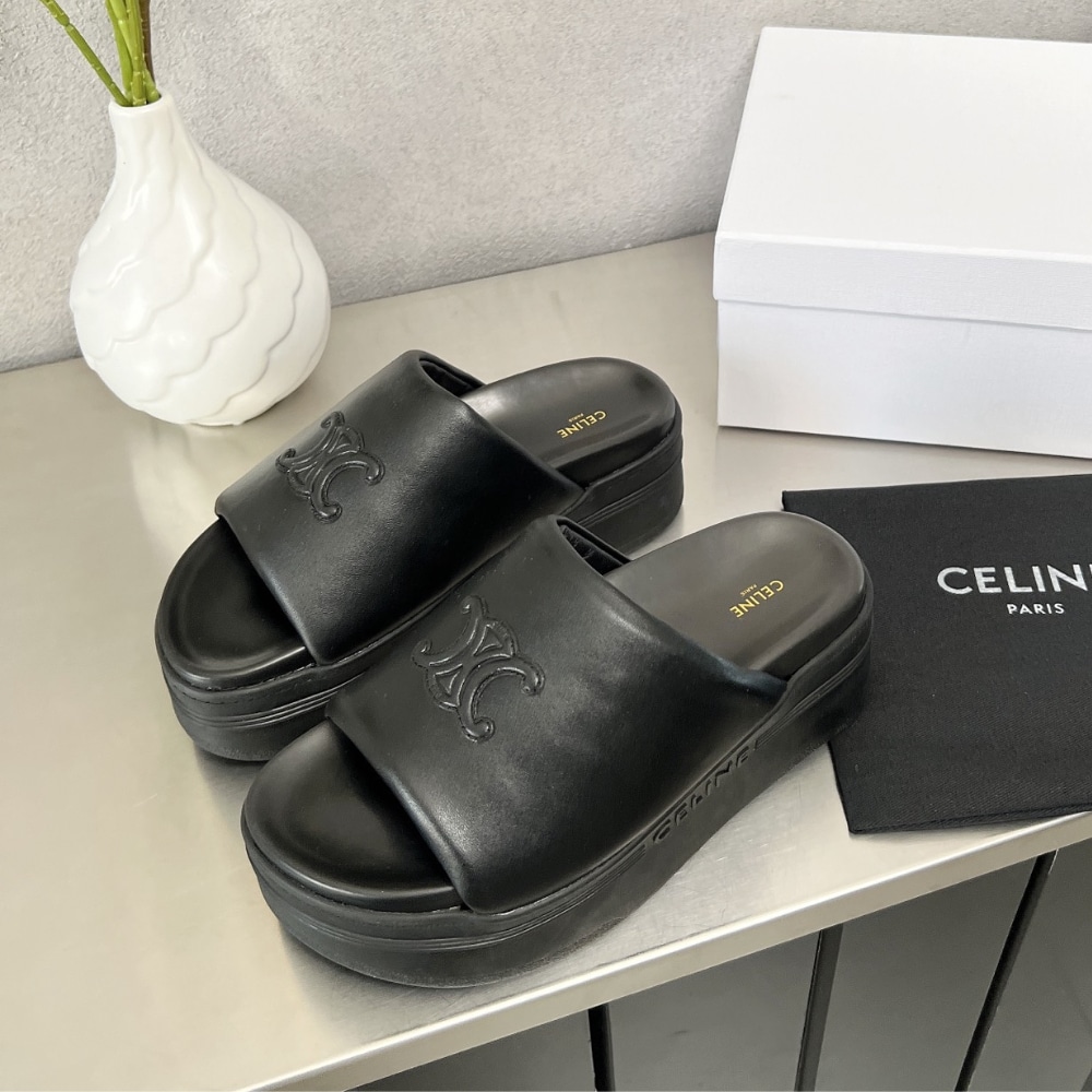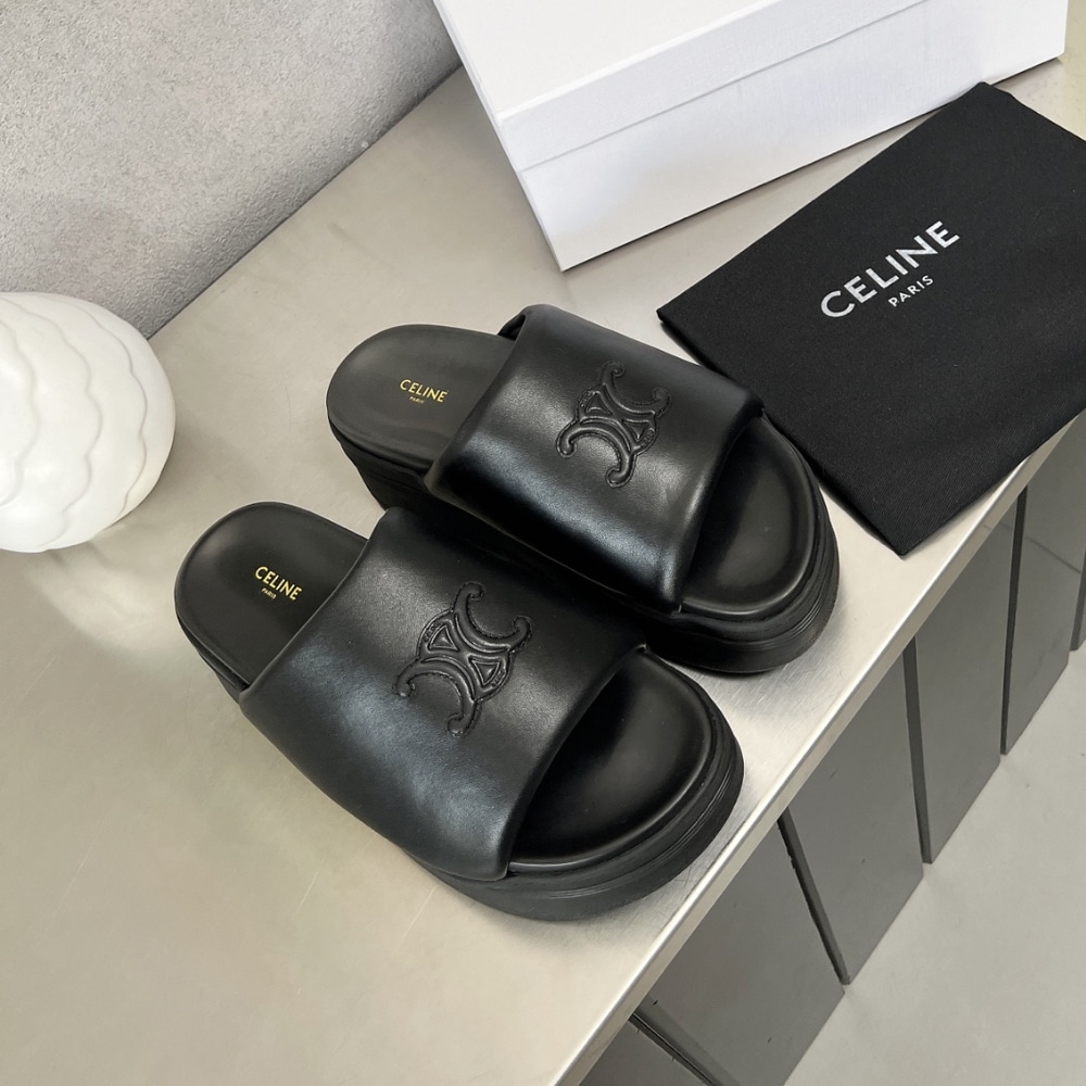 Description 1:1 Replica Shoes Round Toe Shape Oversized Triomphe Embossed On The Upper Celine Embossed On The Side And Under The Outsole Slip-On Leather Covered Anatomic Insole Rubber Wedge Outsole