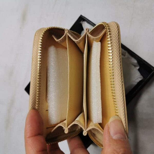 Chanel 19 Card Holder With Zipper Leather Beige Wallet