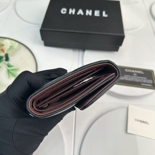 The Chanel 19 Flap Card Holder in black captures the essence of Parisian chic in a compact, refined design. With its signature quilting and bold emblem, it exudes timeless elegance, making every detail a statement of sophistication and prestige.