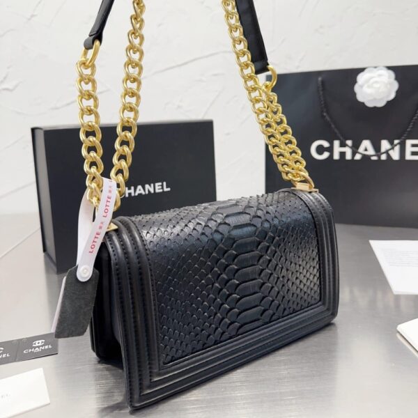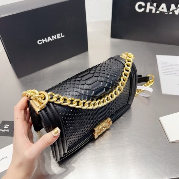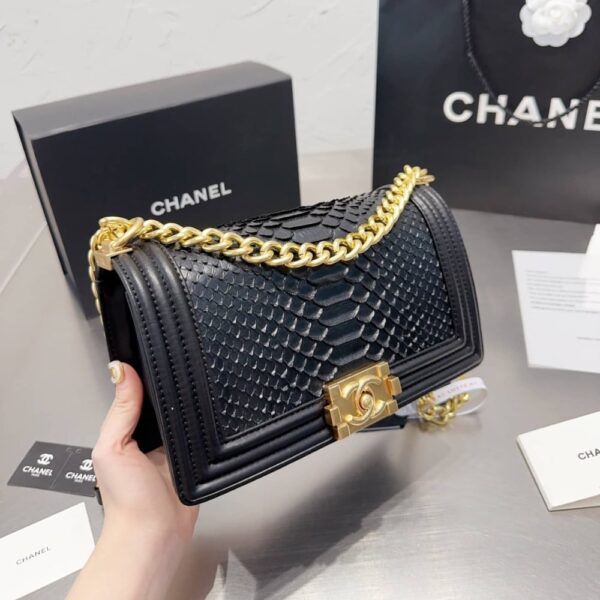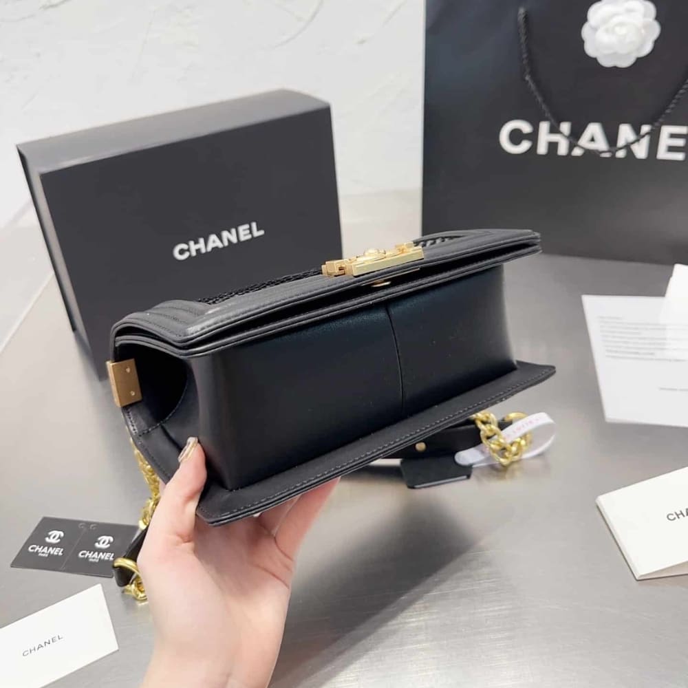 The Chanel Boy Flap Bag in black redefines bold sophistication with its striking texture, structured lines, and powerful silhouette. An icon of modern prestige, it radiates confidence and allure, making it the ultimate statement piece for those who embody luxury with an edge.