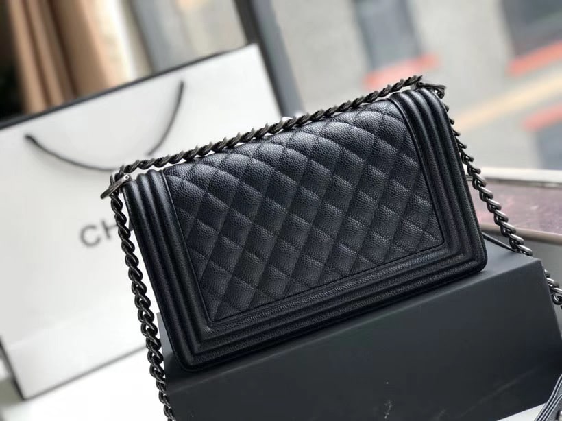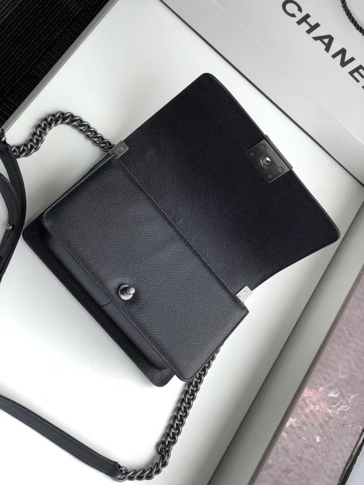 Chanel Boy Medium Handbag Black Sliver Hardware