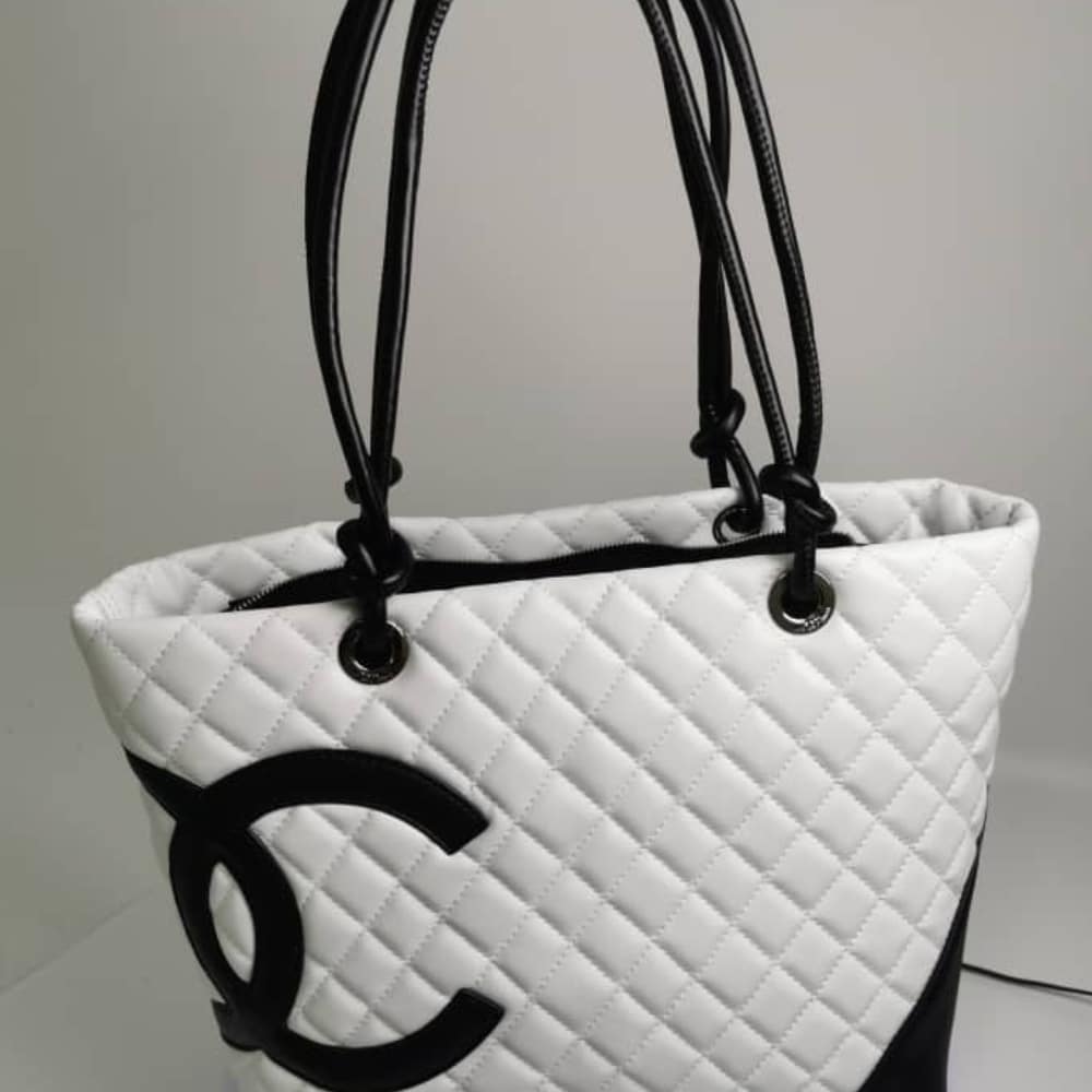 Chanel Cambon Line Large Tote Bag In White And Black
