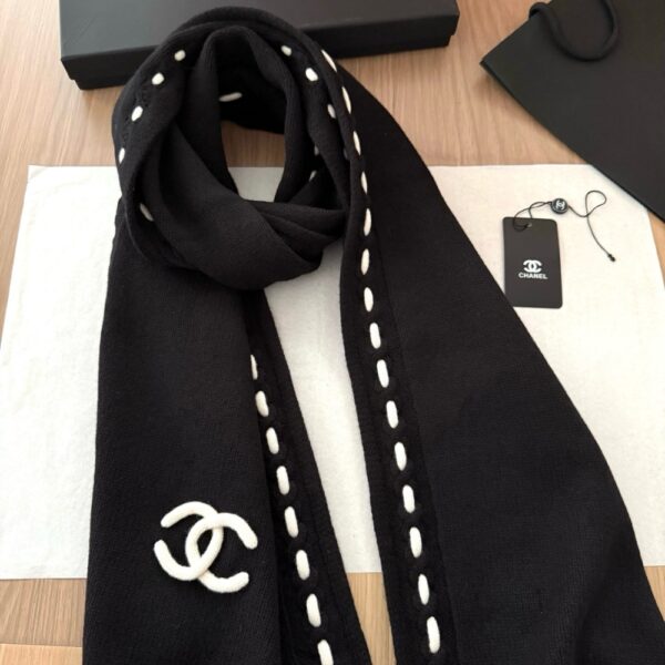 Chanel CC Logo Cashmere Scarf Black
