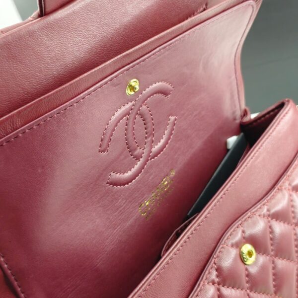 Chanel Classic 11.12 Handbag Gold Tone Metal Burgundy