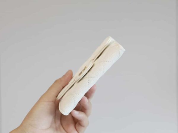 The Chanel Classic Card Holder Wallet in white captures timeless elegance in a compact form, its clean lines and iconic quilting radiating sophistication. An emblem of prestige, it elevates even the simplest gesture into a statement of style and refinement.