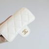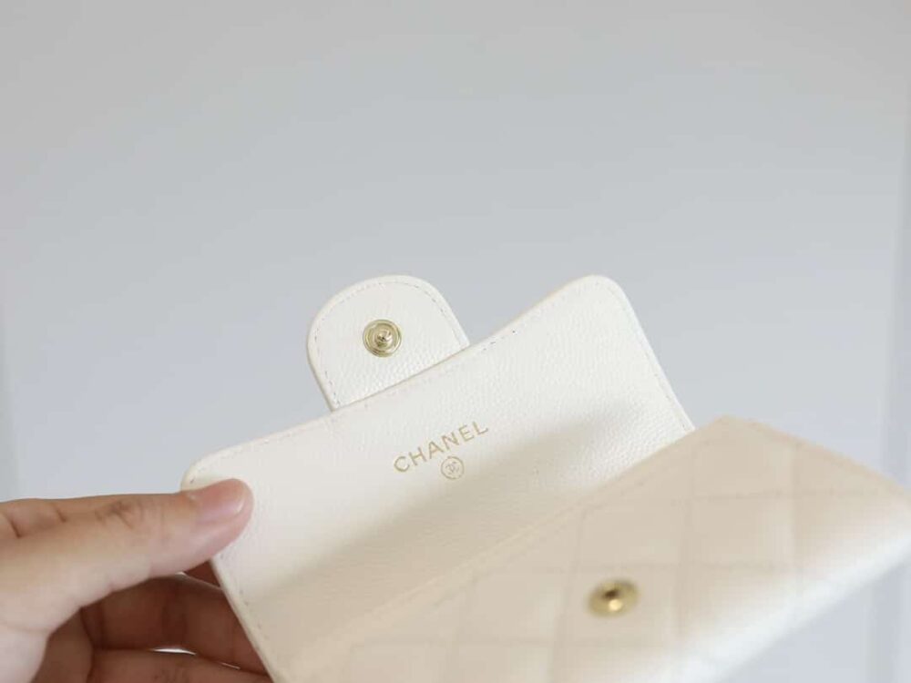 The Chanel Classic Card Holder Wallet in white captures timeless elegance in a compact form, its clean lines and iconic quilting radiating sophistication. An emblem of prestige, it elevates even the simplest gesture into a statement of style and refinement.