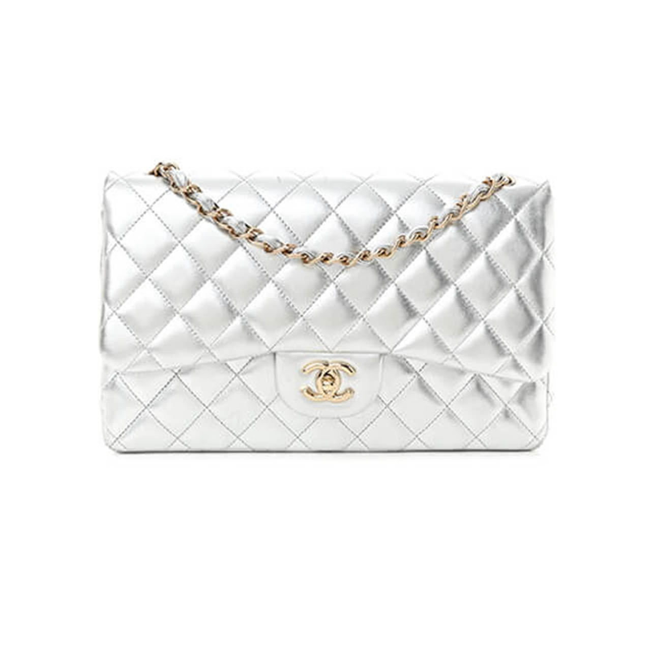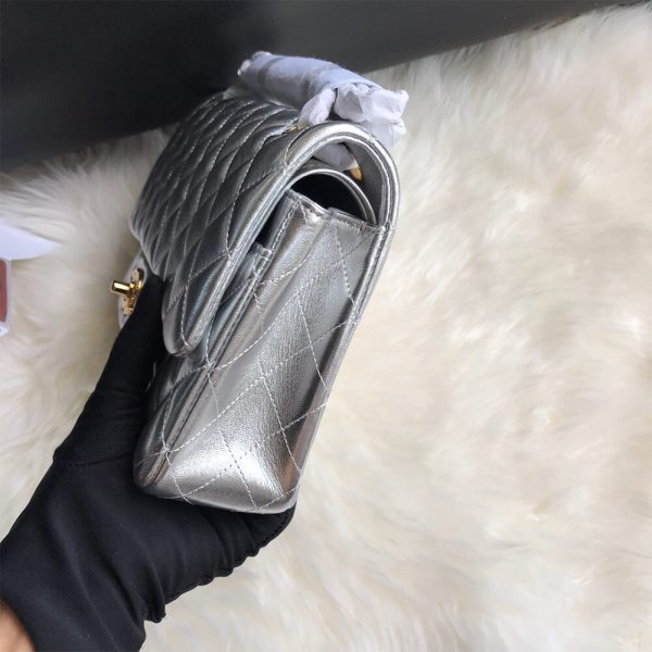Metallic Silver with Gold hardware and gold Chain