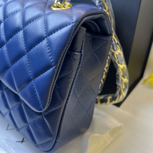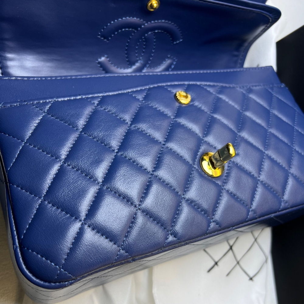 Chanel Classic Handbag Blue With Gold Hardware