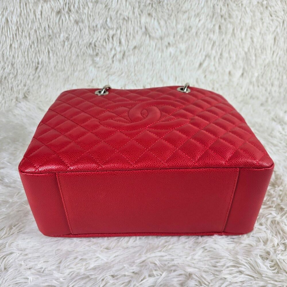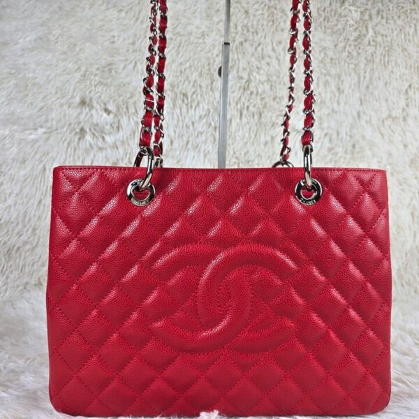 The Chanel Grand Shopping Tote in radiant red is a timeless emblem of sophistication, designed to command attention with its bold elegance and iconic quilted detailing. A true statement of prestige, it affirms your impeccable style while seamlessly blending everyday practicality with Parisian allure.
