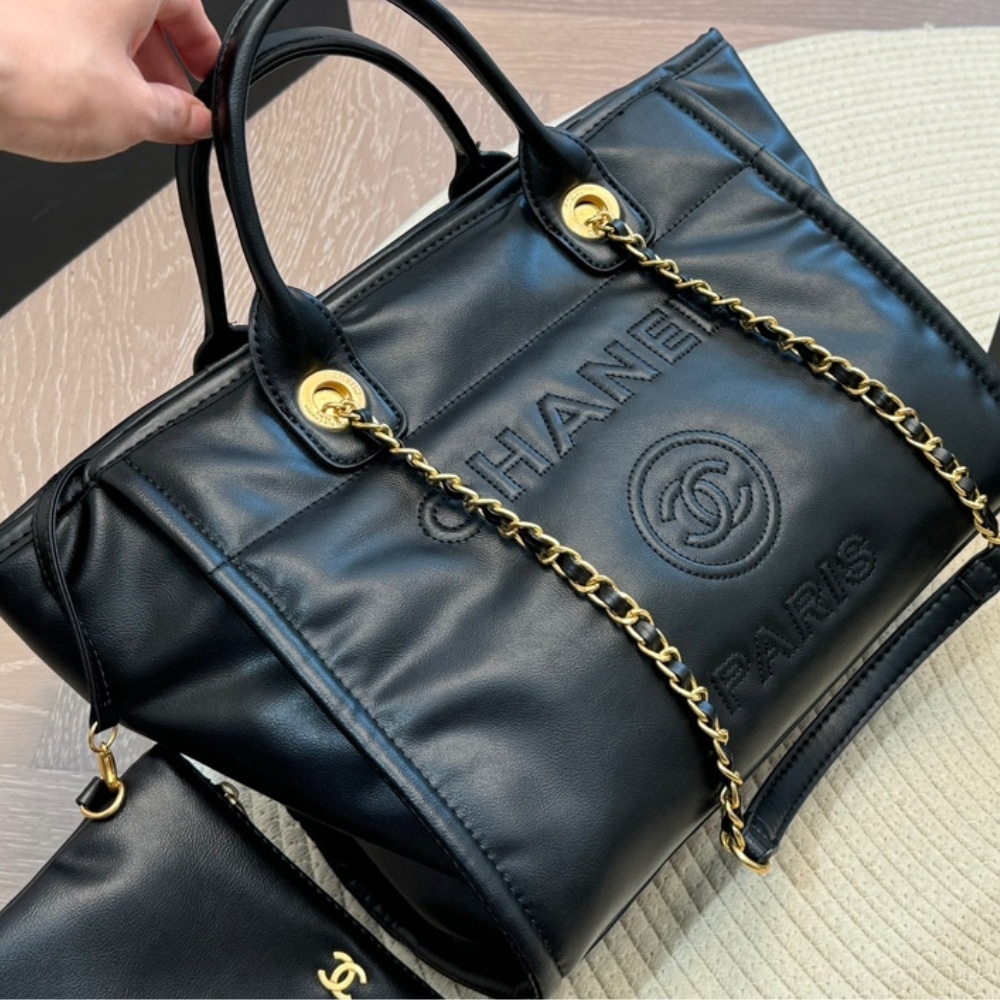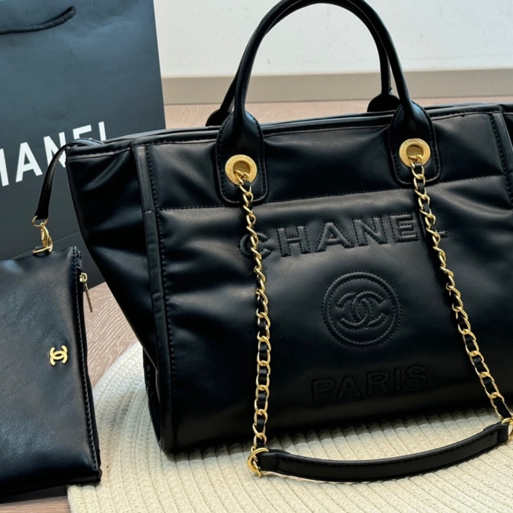 Chanel Large Deauville Shopping Bag Black