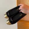 Chanel Leather Cap Toe Ballet Flats Black Gold