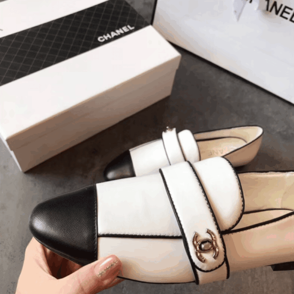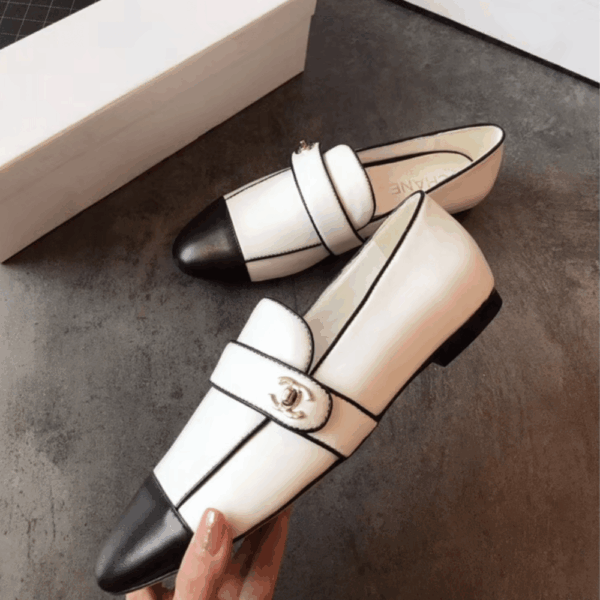 Chanel Leather CC Cap Toe Slip On Loafers White