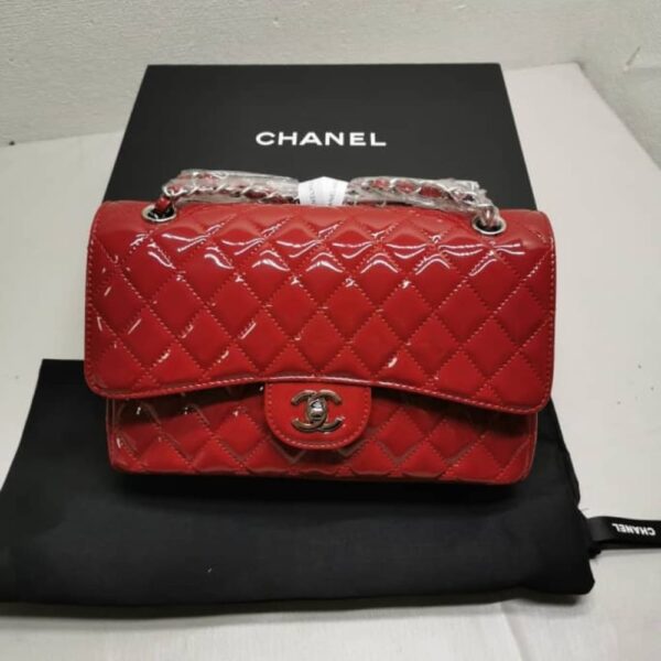Chanel Medium Classic Double Flap Bag Patent Leather Red
