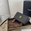 The Chanel Medium Coco Handle Bag in black with gold hardware is a timeless statement of elegance and sophistication. Its structured silhouette and iconic quilting exude prestige, making it the perfect companion for those who embrace effortless luxury and enduring style.