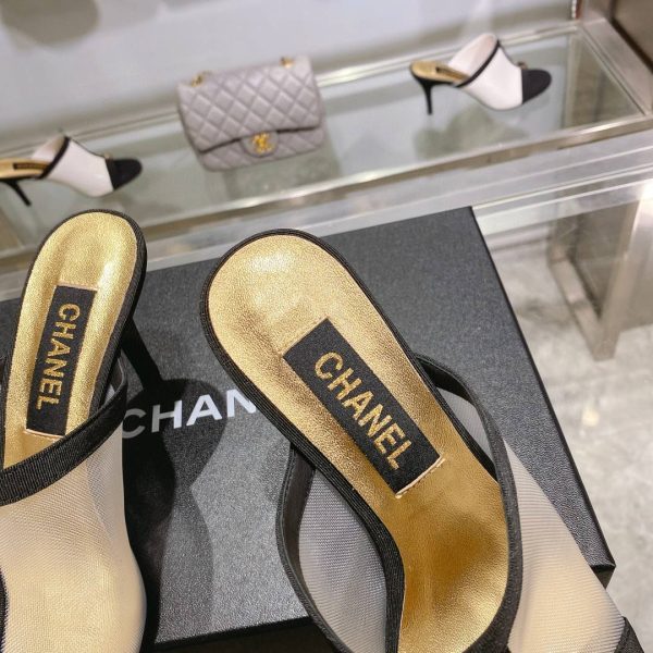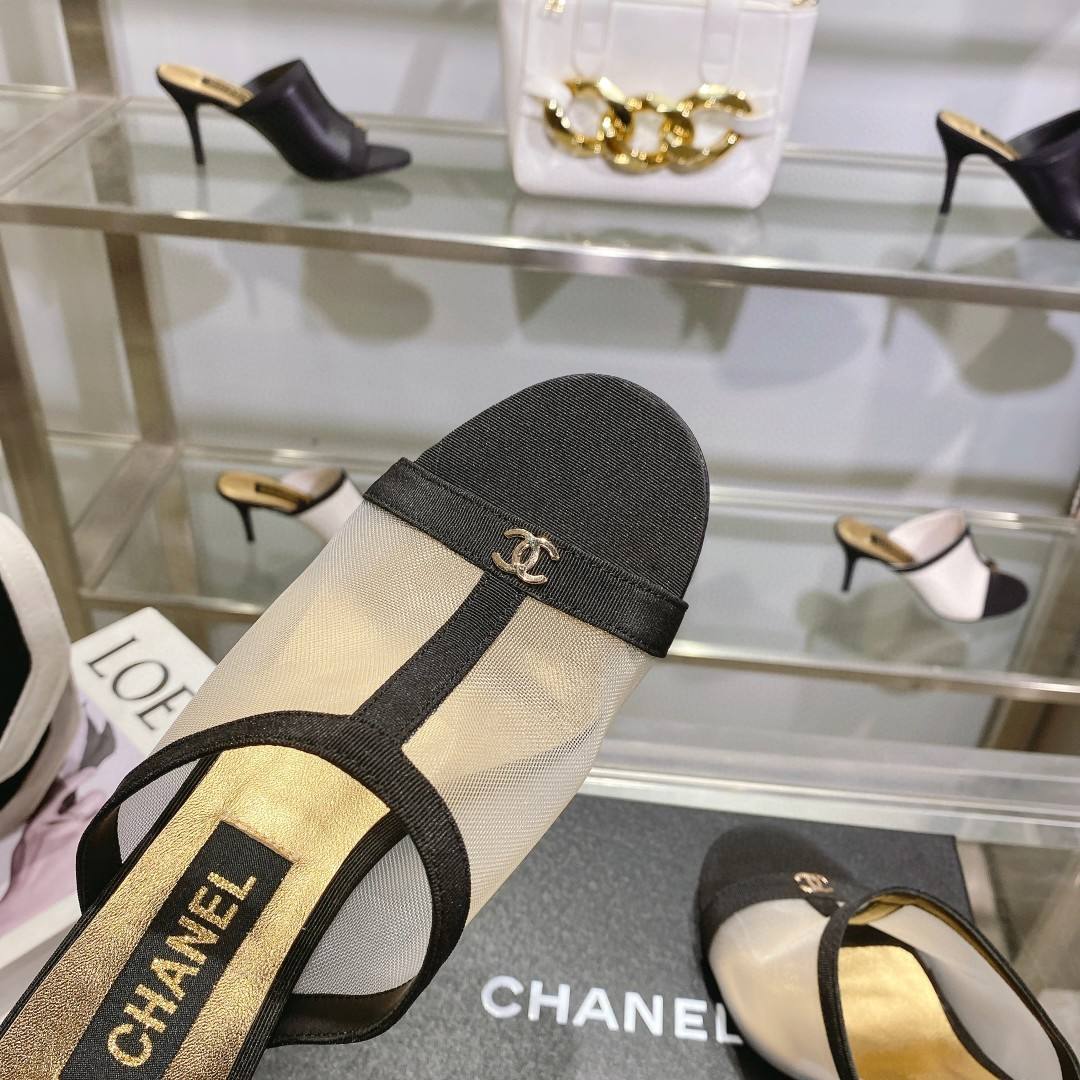 Chanel Leather Cap Toe Ballet Flats Black Gold