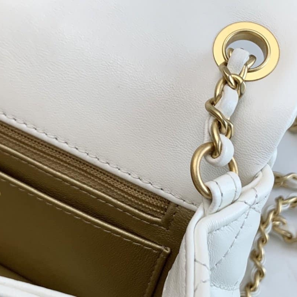 Chanel Quilted Mini CC Pearl Crush Rectangular Flap White