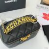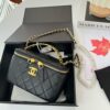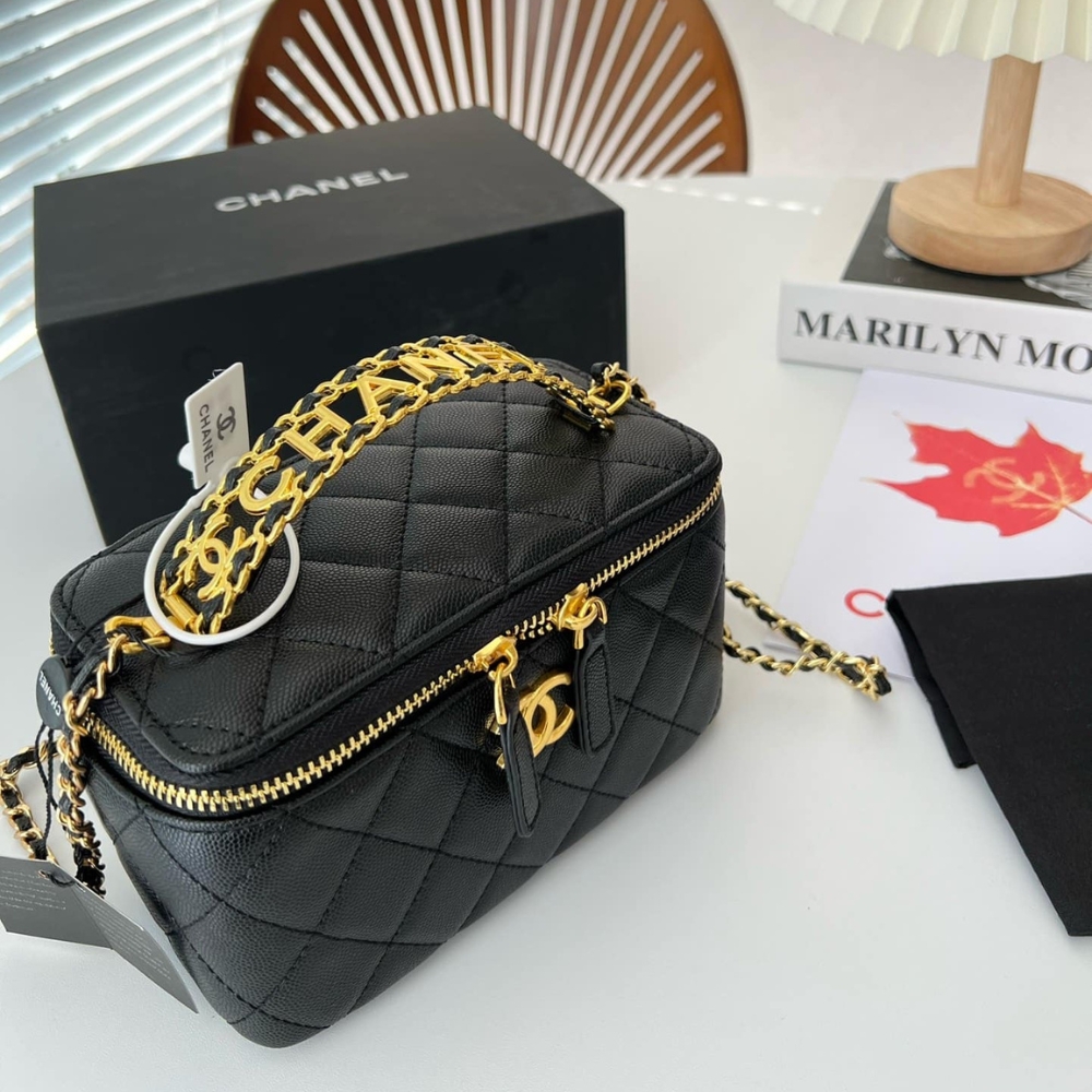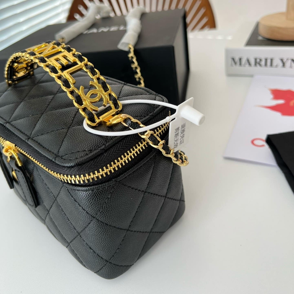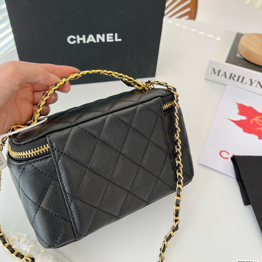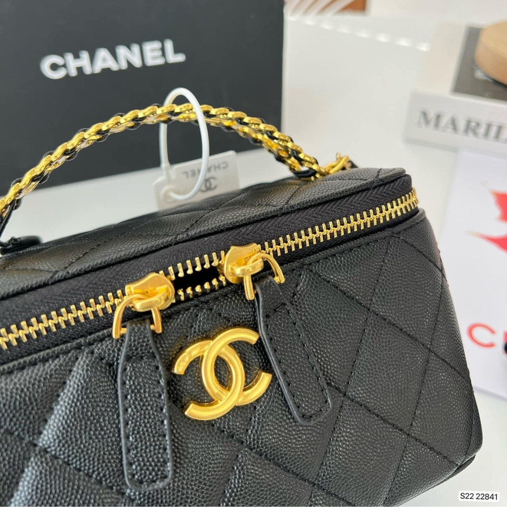 The Chanel Small Vanity Case SS22 Black captures the essence of timeless chic with its sleek silhouette and refined quilting. Embellished with the signature CC and polished accents, it radiates elegance and prestige, making it the ultimate symbol of elevated style.