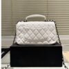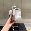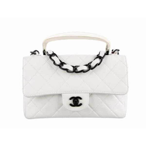 “The Chanel Vintage Small Classic Flap in white radiates timeless charm, with its refined silhouette and striking black accents. A true icon of elegance, it embodies sophistication and prestige, making it the ultimate statement of luxury.