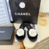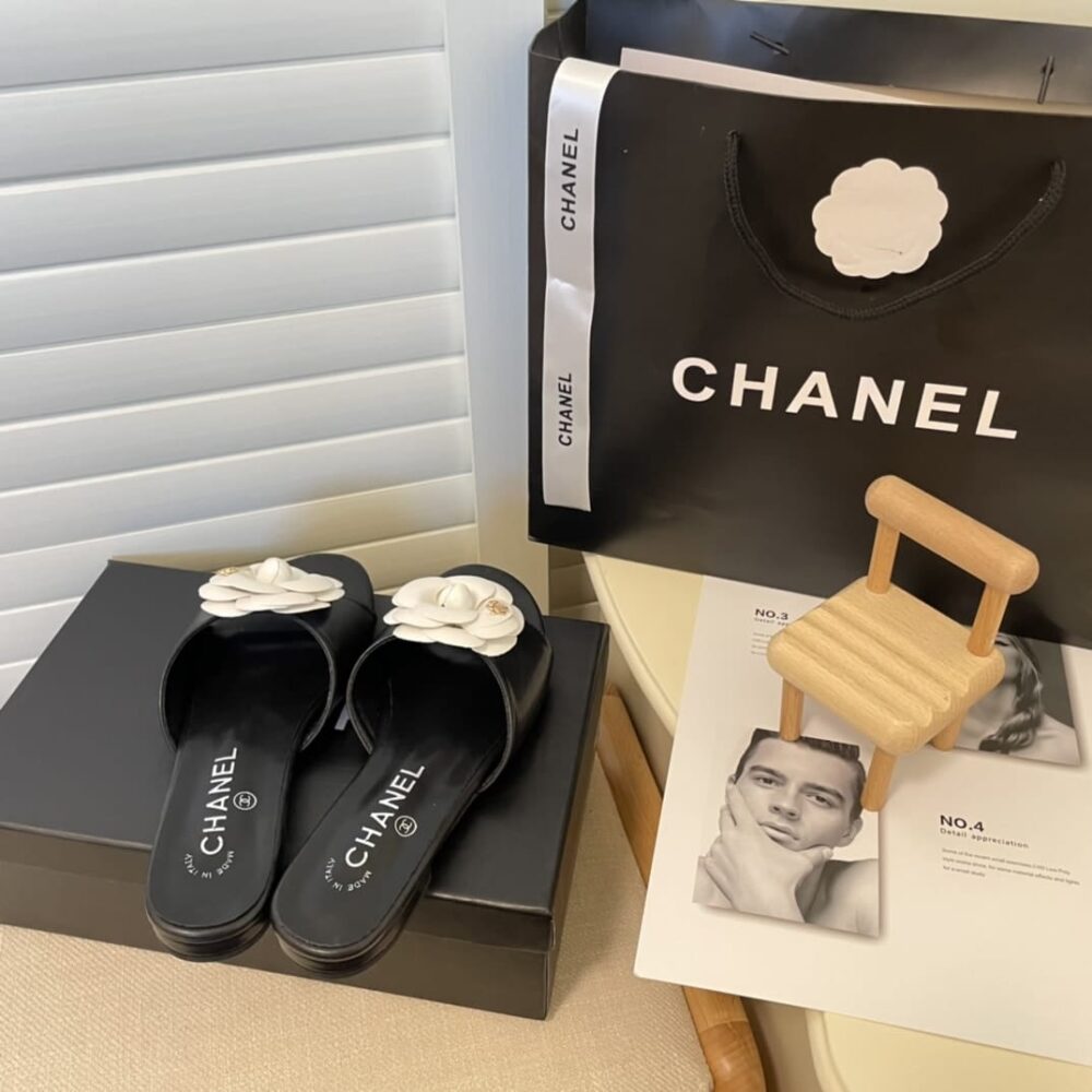 Chanel White Camellia Slides Black