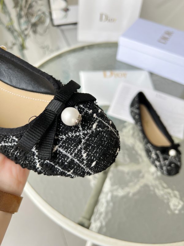 Description 1:1 Replica Shoes Grosgrain bow on the front Decorative CD signature resin pearl Padded calfskin insole Leather sole with star, Christian Dior’s lucky symbol