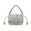 - Large suede-lined internal compartment with drawstring closure featuring cream-coloured leather ties.