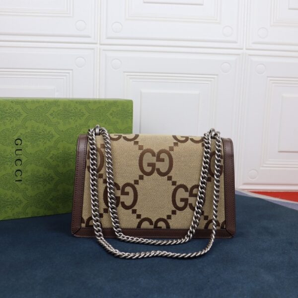 The Gucci Dionysus Jumbo GG Super Mini Bag in brown captures iconic charm with its bold oversized motif and signature tiger-head closure, radiating confidence and allure in every detail. Compact yet striking, it embodies modern elegance and delivers an unmistakable statement of prestige and individuality.