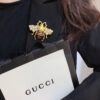 This Gucci GG Black and Red Bee Brooch radiates bold sophistication, blending timeless charm with a touch of whimsy. A striking emblem of luxury, it transforms any ensemble into a statement of elegance, individuality, and undeniable prestige.