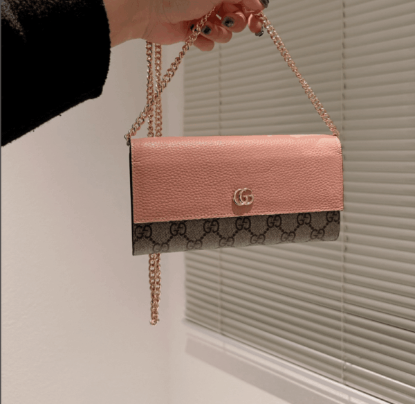 Gucci GG Marmont Bicolor Wallet On Chain Pink
