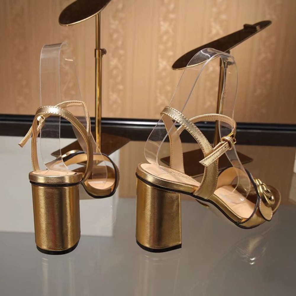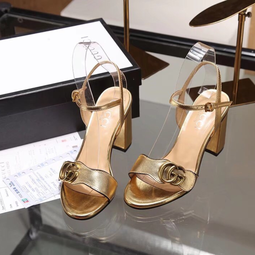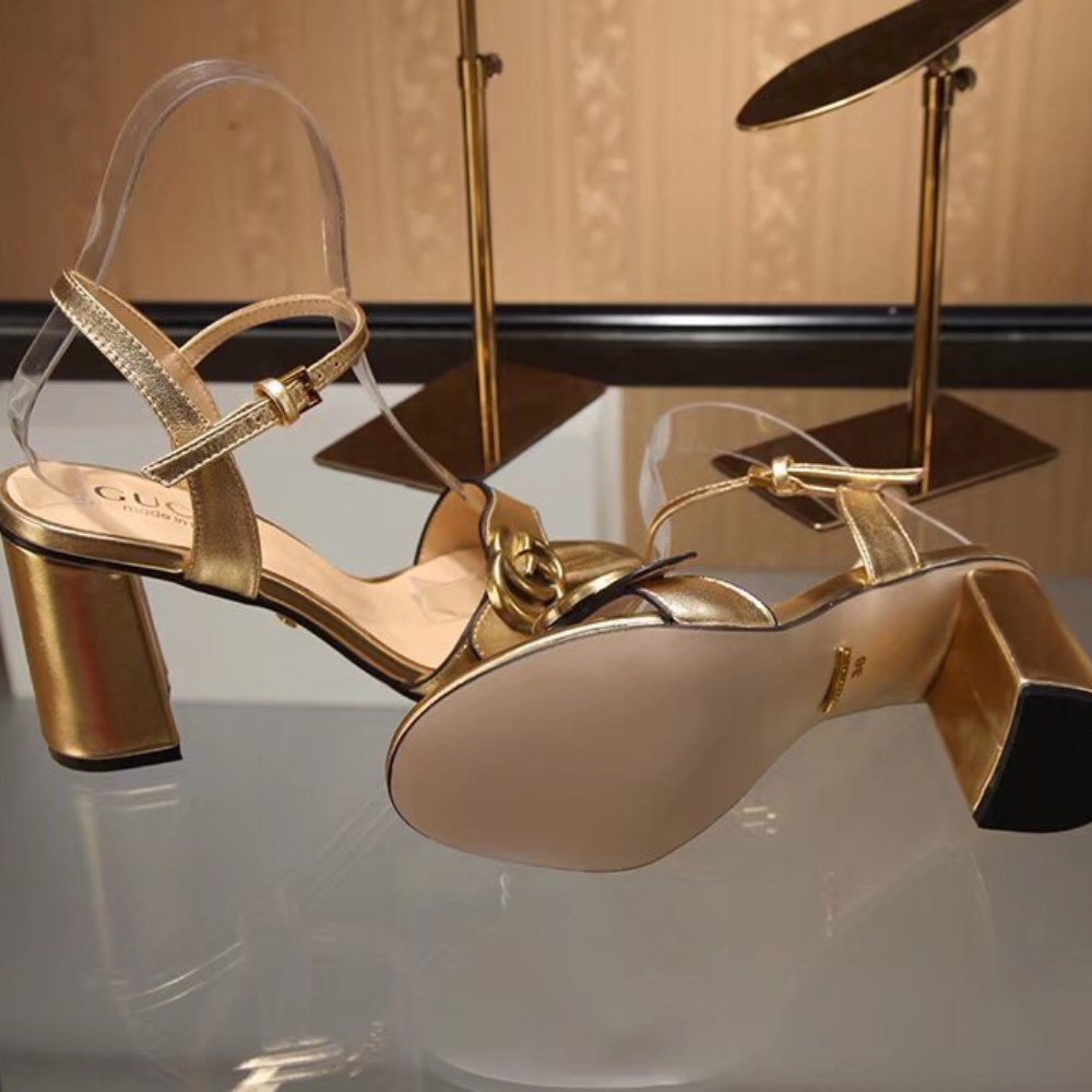The Gucci Gold Metallic Laminate Mid Heel Sandal shines with iconic elegance, its radiant finish and signature emblem creating an aura of refined prestige. Designed for both comfort and sophistication, it elevates every step into a glamorous expression of confidence and luxury.