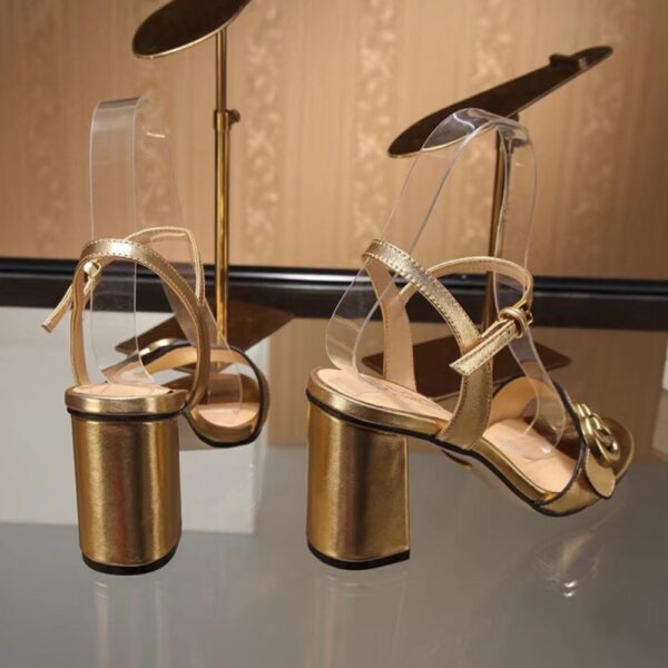 Gucci Gold Metallic Laminate Leather Mid Heel Sandal 453379