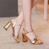 Gucci Gold Metallic Laminate Leather Mid Heel Sandal