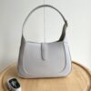 The Gucci Jackie 1961 Medium Bag Light Grey in beige and dark brown reimagines a timeless icon with refined minimalism. Its sleek silhouette, accented by the signature piston closure, radiates effortless sophistication and a modern aura of prestige.