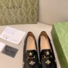 The Gucci Jordaan Embroidered Loafer in black merges timeless sophistication with iconic bee and star motifs, creating a look of undeniable prestige. With its sleek design lines and effortless comfort, it elevates classic elegance into a bold statement of luxury style.