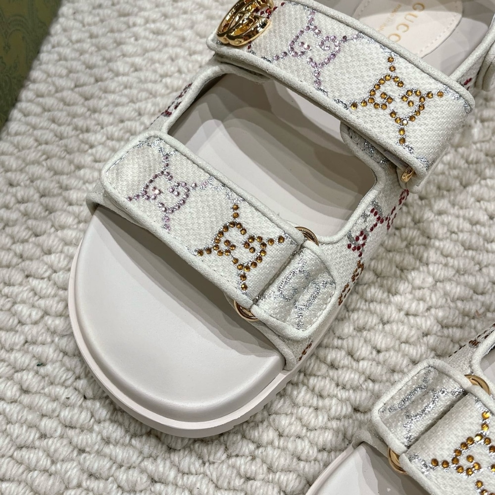 Gucci Moritz GG Monogram Sandals Beige Ebony
