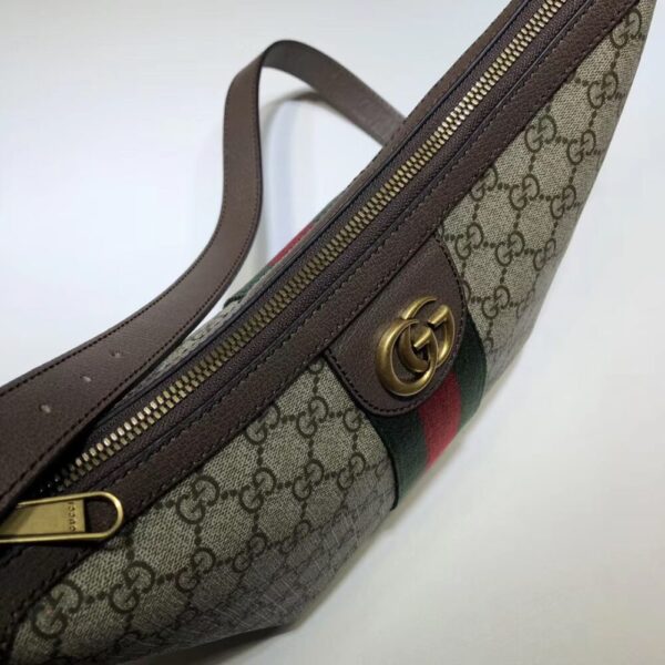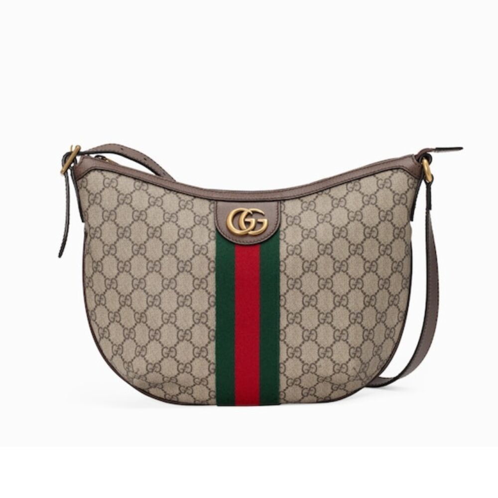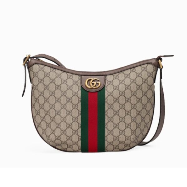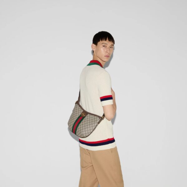 A new style created by combining Gucci’s signature classic GG motif and Web stripe. The design blends iconic details with the distinctive charm of the Gucci hobo bag, a favorite since the late 1950s. Crafted from GG Supreme canvas, it features textured leather trim and a double G metal plaque.