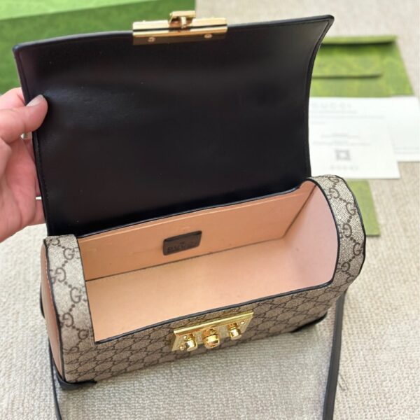 This Padlock handbag is crafted from GG Supreme coated canvas. With an iconic bamboo top handle and a lockable gold-tone metal push fastening with coordinating keys housed in the leather tab. Carry it alongside smart tailoring to channel retro refinement.