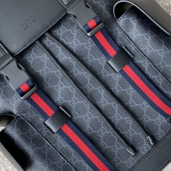 Gucci Soft GG Supreme Black Backpack with Blue & Red Web