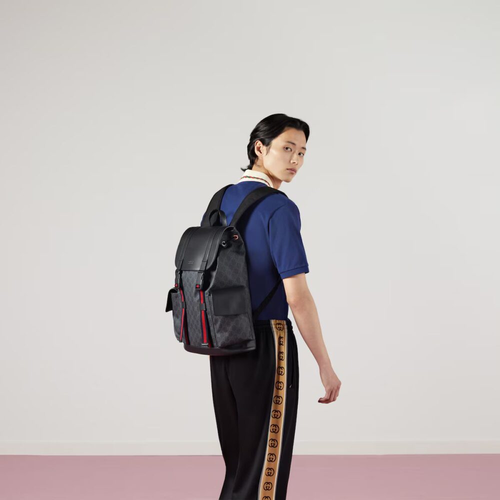 A refined fusion of practicality and prestige, this Gucci Soft GG Supreme Backpack in black and grey redefines everyday elegance. Accented with the House’s iconic blue and red web stripes, it embodies understated confidence and modern sophistication for the man who moves with purpose.