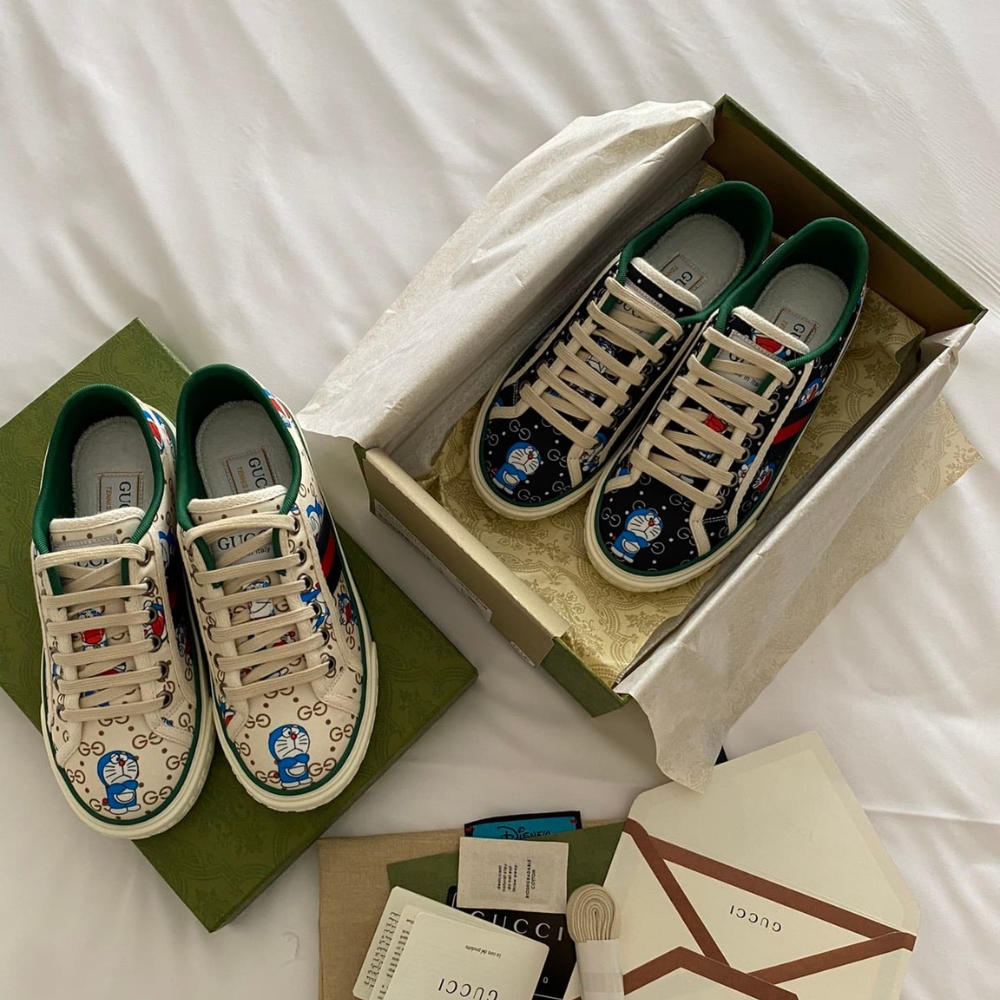 The Gucci Tennis 1977 Doraemon Sneaker White fuses playful artistry with the house’s iconic design, creating a sneaker that radiates both charm and prestige. With its refined lines and effortless comfort, it elevates casual style into a statement of individuality and luxury.