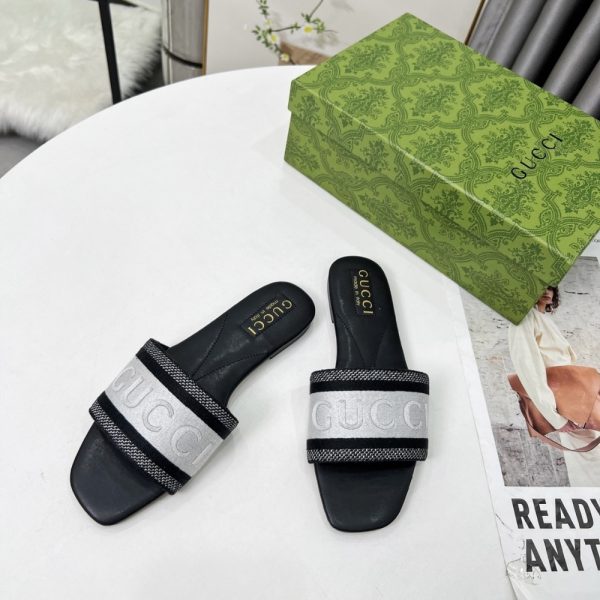 Home / 04-04 / GUCCI WOMEN SLIDE SANDAL WITH WEB BLACK AND WHITE 817564 FAECG 8843