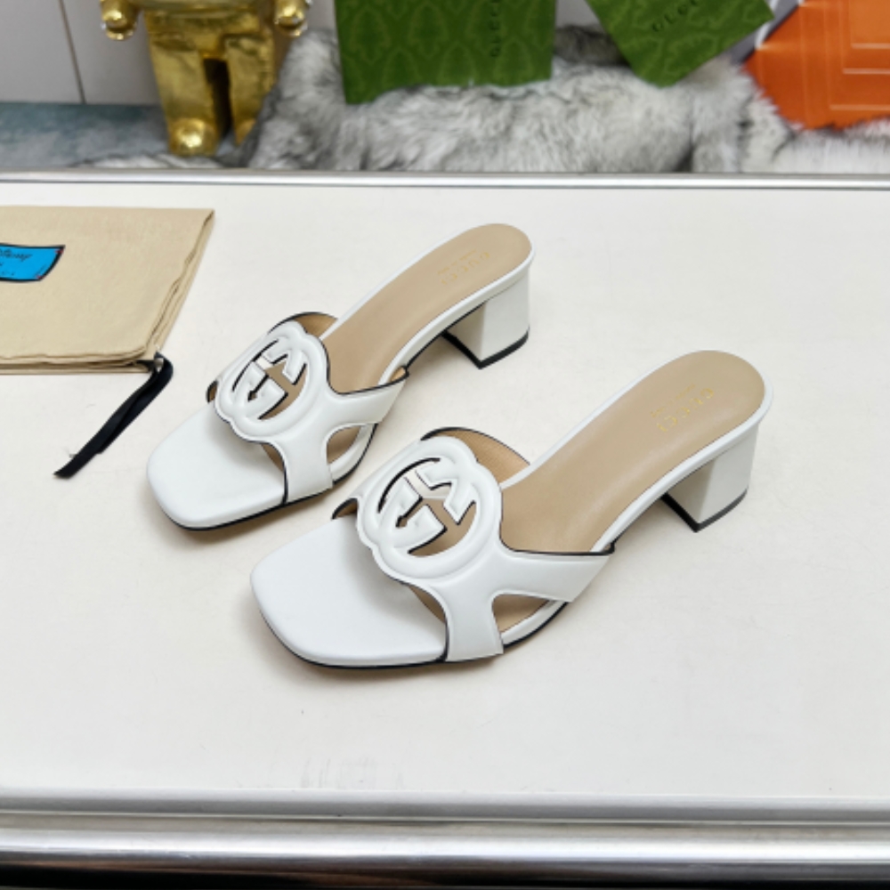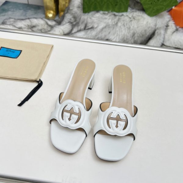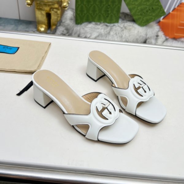 Description 1:1 Replica Shoes White leather Leather lining Interlocking G cut-out Leather sole Mid-heel