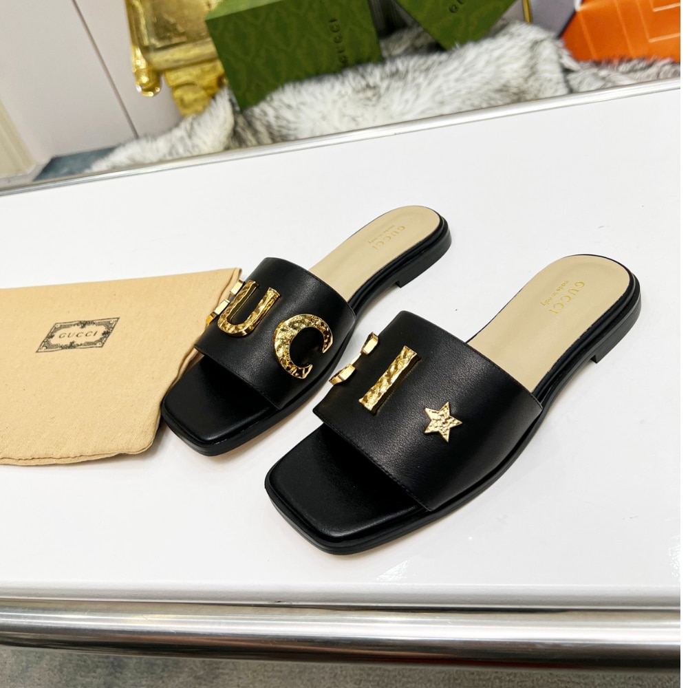 Gucci Women’S Logo Embellished Slide Sandals Black