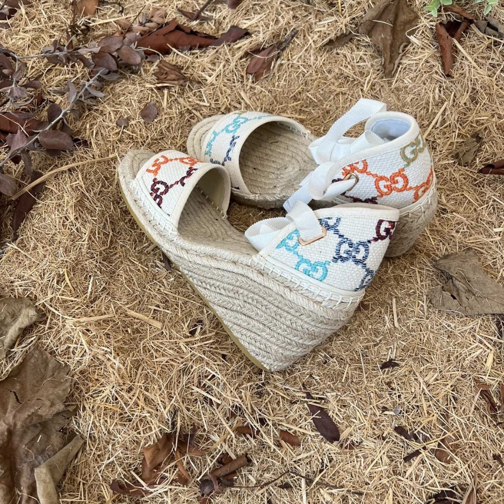 The Gucci Women’s Platform Espadrille Sandals blend effortless charm with iconic sophistication, featuring vibrant GG accents that celebrate timeless style. Designed for both comfort and elegance, they elevate warm-weather looks with a luxurious aura that affirms confidence and prestige.