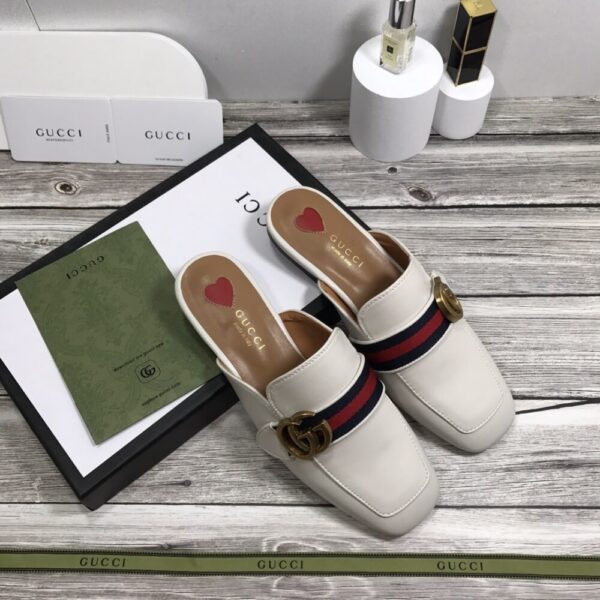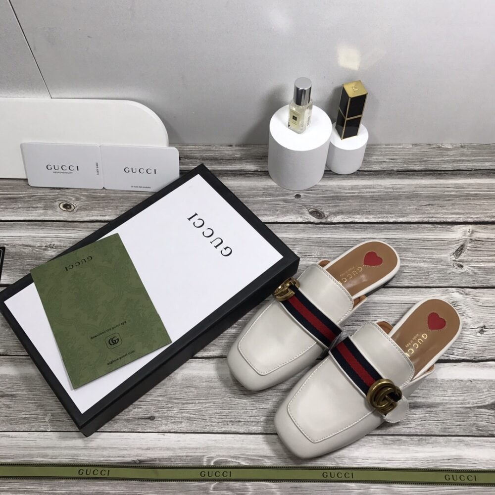 The Gucci Princetown Leather Slipper in white radiates timeless sophistication, merging sleek design with the house’s emblematic detailing. Its effortless silhouette and iconic allure elevate any ensemble, embodying refined comfort and undeniable prestige for the modern luxury enthusiast.