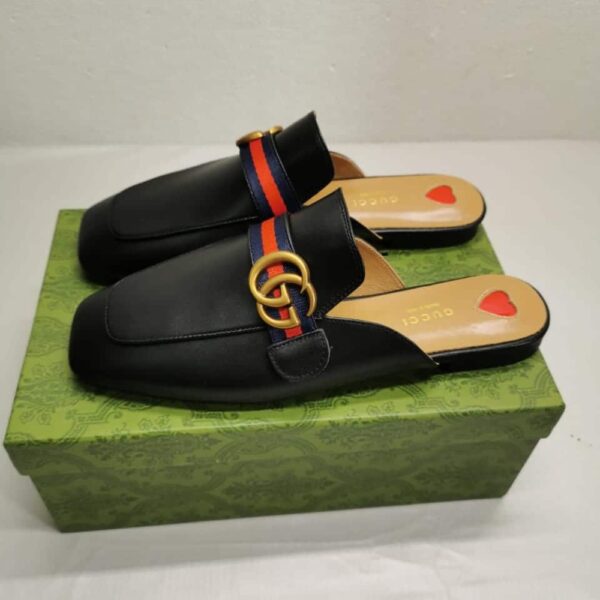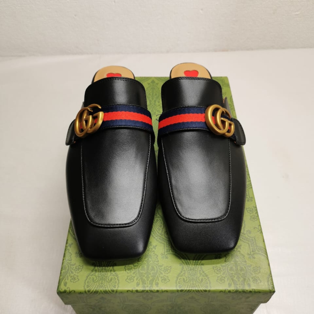 Gucci Women’S Princetown Slipper Double G Black Leather 423694 DKHC0 1061