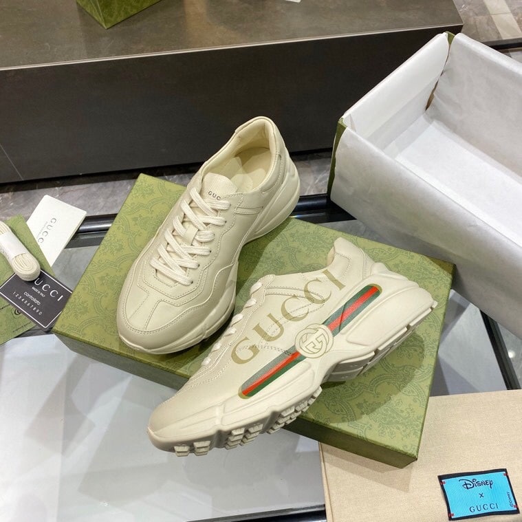 The Gucci Women’s Rhyton Gucci Logo Sneaker brings bold sophistication to casual wear with its oversized silhouette and iconic logo accent. Effortlessly blending comfort and prestige, it radiates modern luxury and makes a striking statement in every step.