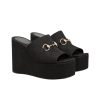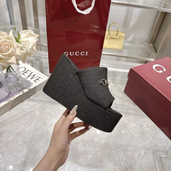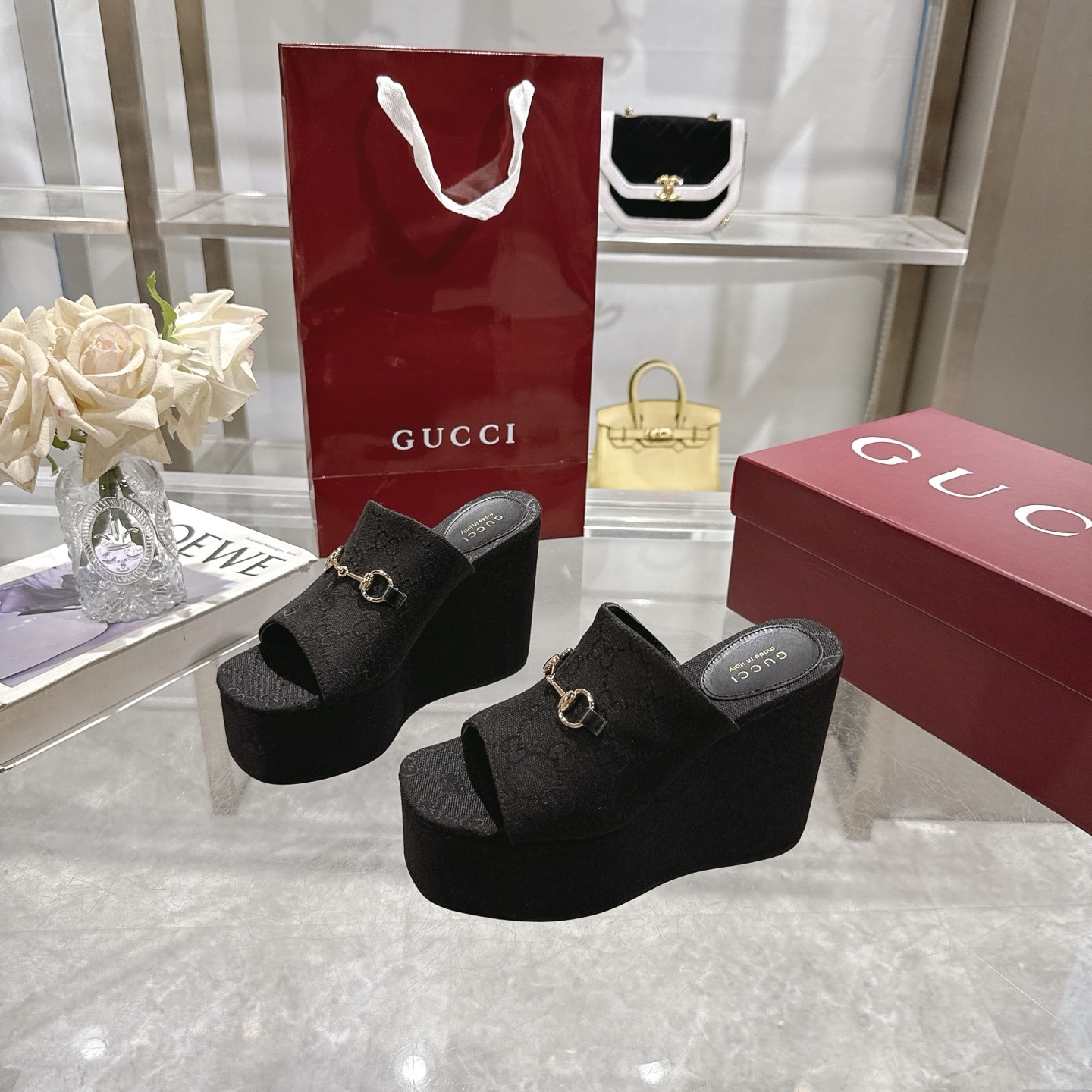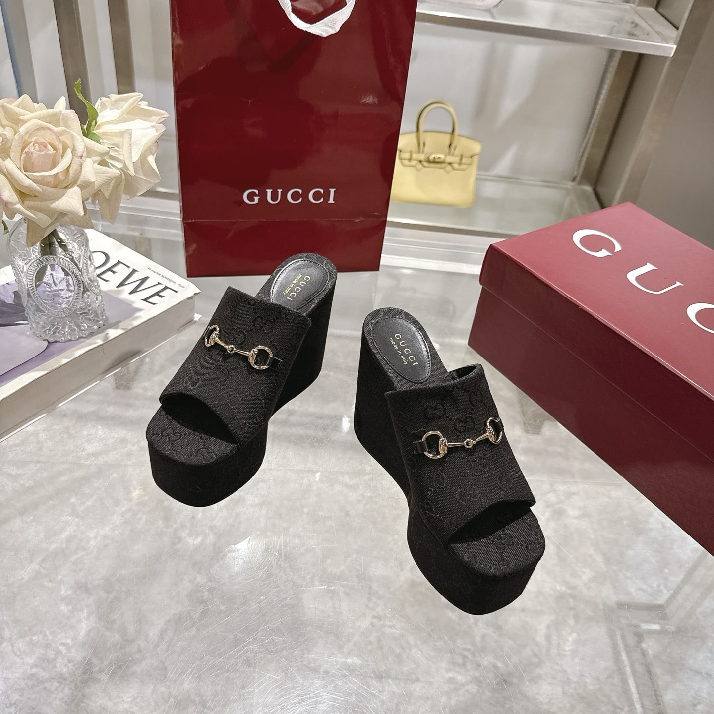 Description 1:1 Replica Shoes Black GG canvas Light gold-toned hardware Leather lining Horsebit Leather sole High heel
