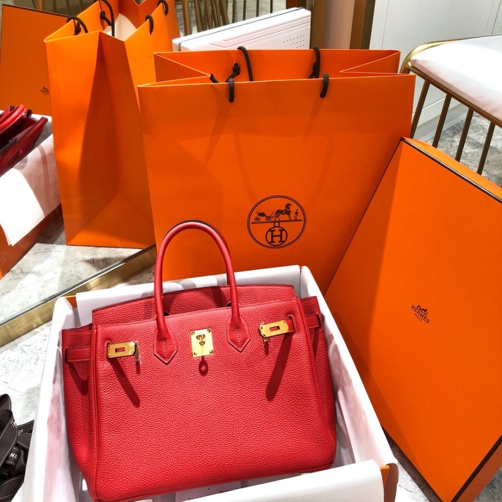 Hermes Birkin 25 Bag Togo Rouge Vermillon