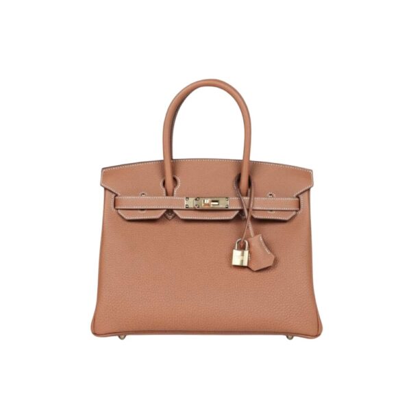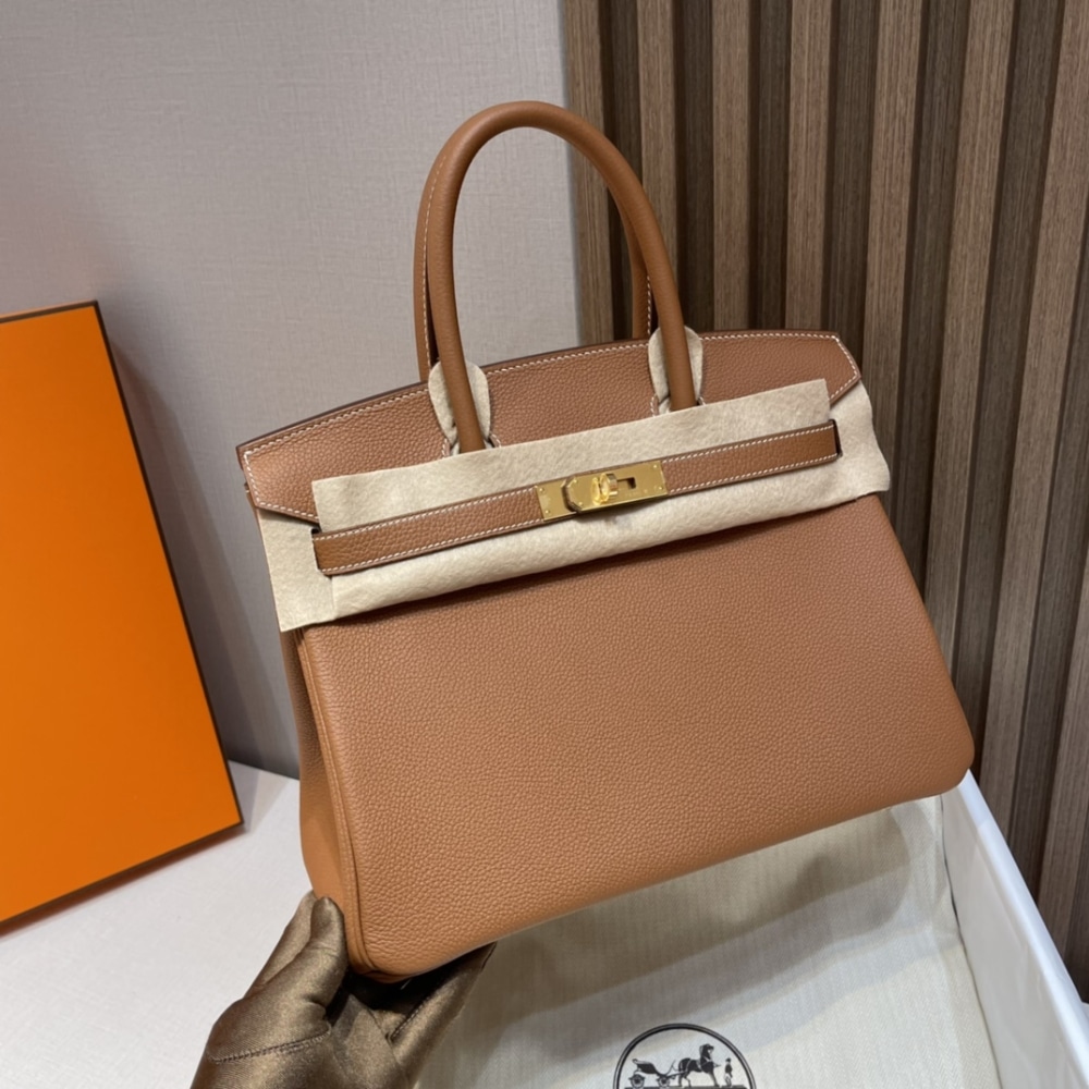 The Hermès Birkin 30 in brown with gold hardware exudes timeless sophistication, with its supple leather, elegant stitching, and iconic structured silhouette. A true emblem of prestige and refinement, it embodies effortless luxury for those who embrace classic elegance with modern authority.