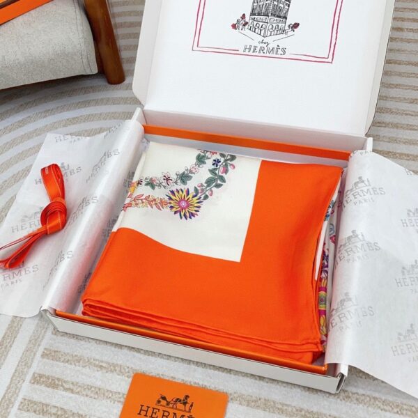 Hermes Brides De Gala En Fleurs Scarf 90Cm Vermillon